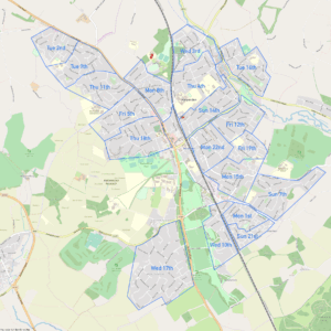 | Mon 15th | 3rd Scouts | Topstreet Way, Crabtree Ln, Meadow Walk, Churchfield, Piggotshill Ln, Hilltop Walk, Alzey Gdns |